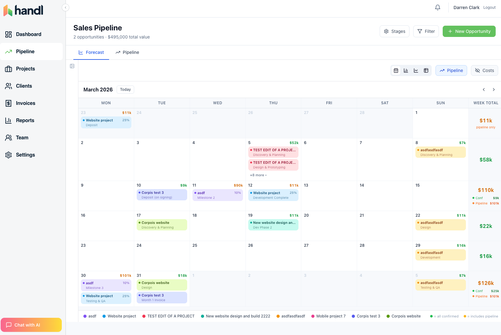 Handl gives you a live pipeline of every invoice across your agenc, what's ready to send now, what's close, and what's coming next month.