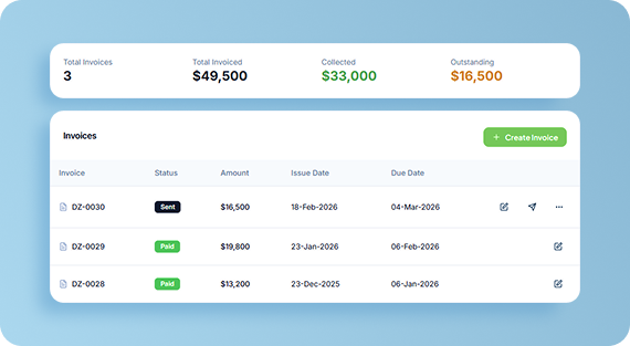 nvoices go out the moment work is done. Auto-pay options mean some clients pay before you even check. Automated reminders handle the follow-up.